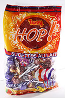 Hop, une sucette à la douceur de lait, intensément vanille, chocolat, ou fraise, au choix.