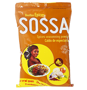 Le sac SOSSA 1kg convient à tout le monde, que vous soyez un professionnel de la restauration, ou la maman d'une famille nombreuse, le bouillon en poudre SOSSA se conserve au sec pendant 1 an! 1kg l'assurance de ne jamais manquer de SOSSA. Existe aussi en 4 saveurs : Poulet, Epices, Crevette et Tomate.